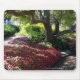 Un lit des impatiens de roses indien, un arbre tourbillonnant-limbed, un chemin de brique et blanc, clôture créent la conception parfaite pour les mousepads, le magnet, les tasses, les couvertures d'iPad/iPhone, les ornements et les dessous de verre coordonnés. Customisez, mélangez et assortissez, en tant que vous svp.