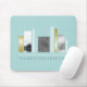 Bousepad élégant pour quelqu'un dans l'architecture avec des formes géométriques remplies de textures et de couleurs turquoise, blanc et or.