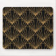 Ce pavé de souris a un design Art Déco de diamants et de triangles en or sur un champ de noir.