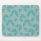 Ce pavé de souris a un design art déco de carrés divisés en deux par des lignes diagonales d'argent. Les carrés sont ensuite assemblés sur un champ de turquoise.