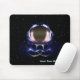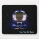 Image fractale bleue et violette ressemblant au casque et aux épaules d'un astronaute sur un arrière - plan étoilé. Ajoutez votre propre texte.