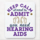 Drôle cadeau audiologique pour audiologiste. Design dit, "Restez calme et admettez que vous avez besoin d'appareils auditifs."