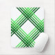 Lignes vertes dans cinq nuances variables, du foncé au clair, de bas en haut. Deux ensembles de bandes sont placés en diagonale aux coins opposés.