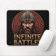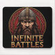 Un design audacieux et dynamique avec le texte "Batailles infinies" dans une palette de couleurs viking traditionnelles, rouge et or. Les mots sont disposés dans un style puissant et angulaire, rappelant les runes anciennes. L'arrière - plan est une surface texturée et patinée, ajoutant un sens d'authenticité et une signification historique.
