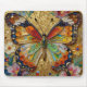 A pretty mouse pad with a front illustration of a beautiful gold, teal and orange butterfly surrounded by yellow, white and purple flowers. It's done with an impasto style and just emanates beauty and grace.