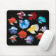 Bettaの色とりどりの写真を集めてマウスパッドを作りました。私はマウスパッドの背景色に黒を選びました。そのためにBettaの体色の鮮やかさがくっきりと現れました。(Photo by KOBAYASHI,Michinobu)
