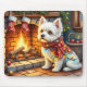 Tapis De Souris Bichon Frise Fireplace with Christmas Lights
