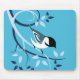 Oiseau stylisé avec brique noire sur une branche décorative.