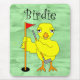 Birdie en texte bouclé avec un poussin jaune tenant un club de golf et le drapeau dans un trou de golf est un drôle de design cadeau pour les golfeurs. La date peut être modifiée.