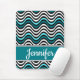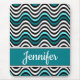 Ce design de plage audacieux présente des vagues océaniques géométriques abstraites accrocheuses en noir, blanc, turquoise et aqua ou turquoise, ainsi qu'un ruban turquoise aux bords noirs et blancs portant un nom personnalisable en blanc dans la typographie de script populaire. Vous pouvez personnaliser cet article pour vous-même ou pour un proche en changeant le nom.