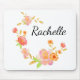 Tapis De Souris Blanc Orange & Rose Floral Monogramme Ajouter Votr
