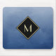 Tapis De Souris Bleu Brossé Élégant Avec Monogramme Or Simple