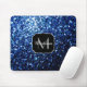 Personnalisez le pavé de souris brillant avec votre initiale et votre nom. De belles parties scintillant brillantes d'un bleu foncé brillent. Photo des étincelles bleues pas de parties scintillant réelles !