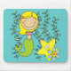 Une sirène aux cheveux blonds souriants sous l'eau avec des algues et des étoiles de mer jaunes, un design océanique mignon pour les filles qui aiment les sirènes. T-shirts de sirène, costumes, bibs, couvertures, linges de bébé, magnets, cartes, sacs, autocollants, porte - clés, mousepads, coussins, pendules murales, serrures et bien plus encore !