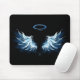 Tapis De Souris Blue Glowing Angel Wings on black background