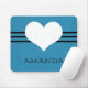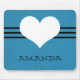 Doux et charmant Mousepad de coeur moderne avec un arrière - plan bleu clair et un coeur mignon et bordure rayée. Cette mousepad mignonne et girly ajoutera du style à tout espace de travail. Customisez avec le texte de votre choix. Cliquez sur "Personnaliser" pour trouver d'autres options de personnalisation.