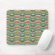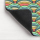 Ce tapis de souris a un design boho de rainbows qui se chevauchent dans des couleurs boho de bleu, vert, jaune et rouge.