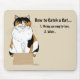 Cette illustration amusante de chat présente un chat calico détendu assis à l'intérieur d'une très petite boîte en carton sur un fond beige doux, associé à la phrase humoristique « Comment attraper un chat ». Inspiré par le comportement félin classique, le design capture l'attrait irrésistible que les boîtes ont pour les chats partout. La composition simple et les tons neutres chauds forment un design ludique et identifiable créé pour les amoureux des chats qui apprécient l'humour quotidien des animaux de compagnie.