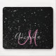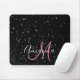 Créez votre propre cadeau personnalisé monogrammed photo mousepad. Style de police calligraphie élégant et glamour avec blanc et une ombre portée noire jumelé à une lettre unique élégant monogramme rose. La photo présente une parties scintillant noire avec un bokeh blanc et gris non ciblé. Gris argenté, noir et blanc à la parties scintillant.