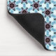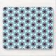 Les motifs géométriques complexes se répètent dans une formation symétrique en utilisant des tons bleu, noir et blanc. Le design se concentre sur des motifs circulaires disposés pour créer un effet visuellement attrayant et équilibré.