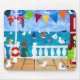 Un mousepad avec une conception de papier peinte à la main de collage du bord de la mer. Voir les cartes de voeux, les affiches/copies, les cadeaux et l'habillement également assortis.