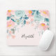 Un tapis de souris avec une bordure florale élégante. Fleurs et feuilles en rose et vert.