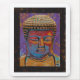 Portrait mixte du Bouddha réalisé par Sheryl Karas. La peinture originale a été faite principalement en acrylique sur toile en rouge, or, noir et bleu.