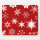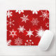 Belle mousepad pour décorer votre bureau pour la saison des fêtes. Des flocons rouges et blancs sur un arrière - plan rouge.
