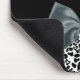 Personnalisez en ajoutant le nom de n'importe quelle fille à cette mousepad empreinte de léopard noire et blanche sophistiquée avec un ruban élégant attaché à un arc féminin élégant. Ce design poster de animal élégant est une image à impression plat, et ne contient pas de ruban réel.