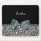 Tapis De Souris Bow gris Empreinte de léopard sophistiqué avec nom