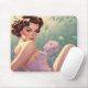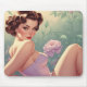 Tapis De Souris Brunette Pin-Up Fleurs Pastel