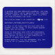Un mousepad bleu comportant une parodie du BSOD infâme (écran bleu de la mort).