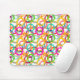 Ce pavé de souris a un design géométrique de trois cercles imbriqués et répartis dans le design en plusieurs couleurs.