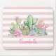 Tapis De Souris Cactus aquarelle adorable, rayures roses succulent
