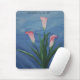 " Calla Lillies" avec un arrière - plan bleu liquide. La peinture originale est en acryliques sur un 48" toile ronde et accroche dans mon salon.