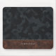 Croustillant et masculin camouflage motif et faux cuir personnalisé pavé de souris nom. Le design est composé d'un motif camouflage gris ardoise foncée associé à un cuir brun imitation cousu pour créer un look robuste et élégant. Personnalisez avec le nom. Oeuvre de Camouflage de Moodthology.