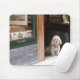 pas sûr que ce soit vraiment un caniche ou une autre race, mais il est très mignon - assis à la porte d'une librairie antique à vienne, en autriche