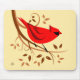 Cardinal rouge perché sur des tourbillons à branches avec feuilles en couleurs d'automne et arrière - plan personnalisable
