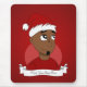Design personnalisé avec une illustration d'un Africain-Américain souriant heureux avec le casquette du Père Noël ; avec modèle texte modifiable, design de Noël avec un arrière - plan rouge, par Radka Kavalcova