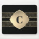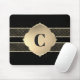 Tapis de souris carré noir personnalisé avec motif diamant or. Vous pouvez ajouter votre nom et votre initiale au centre du monogramme en utilisant le modèle personnalisé.