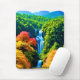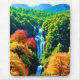 Une cascade chinoise sereine nichée au coeur d'une nature magnifique, entourée d'arbres colorés et de montagnes.