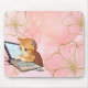 可愛い子猫がPCに興味津々な姿が描かれた大理石柄のマウスパッド♪