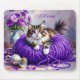 Tapis De Souris Cat in Purple Yarn and Flowers Personalized