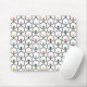 Ce tapis de souris a un design moderne du milieu du siècle en hexagones enchaînés avec un cercle sur une cheville à l'intérieur de chacun.