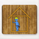Pour tout bricoleur, travailleur de la construction, ou charpentier. Travailleur de la construction illustré de bande dessinée avec la ceinture de casque antichoc et d'outil à l'intérieur du cadre pour une maison.