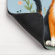 Tapis De Souris Chat Calico souriant dans le jardin fleuri