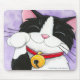 Conception chanceuse mignonne de mousepad de chat de Maneki Neko. Le chat noir et blanc gai de smoking se reposant en position montrante du doigt s'est associé aux chats de Maneki Neko de Japonais. Il utilise un collier rouge avec une cloche d'or énorme. Gentillesse de Kitty pour des amoureux de les chats. Ferait un grand cadeau pour la maison ou le bureau ! Créé d'un © original de peinture Lisa 2009 Marie Robinson