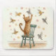 Tapis De Souris Chat de gingembre attraper un oiseau sur papier pe