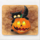 Tapis De Souris Chat Fun Halloween Caractère mordant un Citrouille