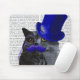Tapis De Souris Chat gris avec chapeau bleu et moustache bleue